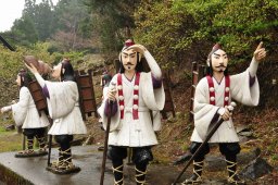 【あらすじ】 ある商人,風雅な方で,食客(いそうろう)置所との看板を出した.「お頼み申す.私は薩摩守忠度と申すもの,兵庫駒ヶ林で岡部六弥太と組み討ちの際,腕(かいな)を斬られ難渋いたすゆえ,居候を頼みます」「これはこれは由緒のあるお方じゃ.さあさあ奥へ」.今度は,法界坊に両腕を落とされたお組の父親,渡辺綱に腕を斬られた茨木童子,湯加減を盗もうとした鍛冶屋団九郎,堅田の小まんと,腕の無い食客ばかりがやって来る.最後は,文楽一人遣いの取巻人形が大勢やって来た.「沢山な居候じゃ.これ,お梅,御膳のしたくをしてあげなさい」「わたし一人で台所に手が足らぬが」「居候も手がたらぬ」 【ひとこと】 主「コリャお梅御膳の拵へを仕て進(しんぜ)升セそふしてあなた方片かいなでどふしてお上りなさるな 忠のり「わたくしは団九郎さんト左りト右ゆへ二人してかはるがはるにたべ升 「浄るりの人形衆はへ 「ヘイわたくしらはすり鉢へ入てもらひ升たら首突込でたべ升 主「そりやまるで犬じやがなコリャお梅よチトきうじ仕て上升へ(古人の食客) 古人の食客(こじんのしょっかく)は,『滑稽落語集』に収められている上方落語.桂柏枝(3)演.『落語事典』には「手無人」(てないど)の演題で載っている. 【つけたし】 『上方落語ノート』(青蛙房(1978))で,桂米朝は,この噺のもともとのサゲは,「一人では手が廻らぬ.うちに家内人(けないど)が大勢いるのに」「いや,あれは皆,手無人(てないど)じゃ」だったろうと推定している.おそらくサゲから先にできた話なので.確かにその方がしっくりくる.『落語事典』でも本文には出てこない「手無人」のタイトルを採用している. 平忠度は,一ノ谷の合戦で岡部六弥太に腕を斬られ,最期をとげる.神戸の駒ヶ林に首塚が,明石に腕塚がある.腕塚神社では,奉納されている片腕(写真)で患部をたたいて,悪いところを治してもらおうとお祈りする.このほかにも,腕を斬られた人物がつぎつぎと登場する. 「隅田川続俤」で,破戒僧の法界坊は,恋するお組の父親である永楽屋権左衛門の両腕を斬り落とすのみか,あまつさえ犬に食わせてしまう.茨木童子は,羅生門で渡辺綱に腕を斬り落とされるが,後日,奪還に現れる.腕をくわえて空中を飛び去るシーンが印象的.「新薄雪物語」,正宗が親心から不出来な息子団九郎の手を切り落として意見する場面(下の巻鍛冶屋).「源平布引滝」三段目,小まんのモデルのおとせ,源氏の兵に白旗を握った腕を斬り落とされても,白旗を握ったままの腕が堅田の浜に漂着した.齋藤別当実盛が堅田に現れるのは,「実盛物語」と呼ばれる段で,実盛が小まんの腕を斬ったのではない.文楽の主役の人形は,主遣い(頭と右手)と左手,足の三人で演じるが,端役の人形は一人で操作する.袖はとじられていて腕が外に出ることはない.それで,詰人形と呼ばれる.落語本文を見ると,取巻人形ともいうらしい. |