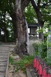 水神橋手前を旧道に入り北側(西保木間4-14)に水神の小社がある.周囲の開発が進み,見晴らしがよくなっていた.