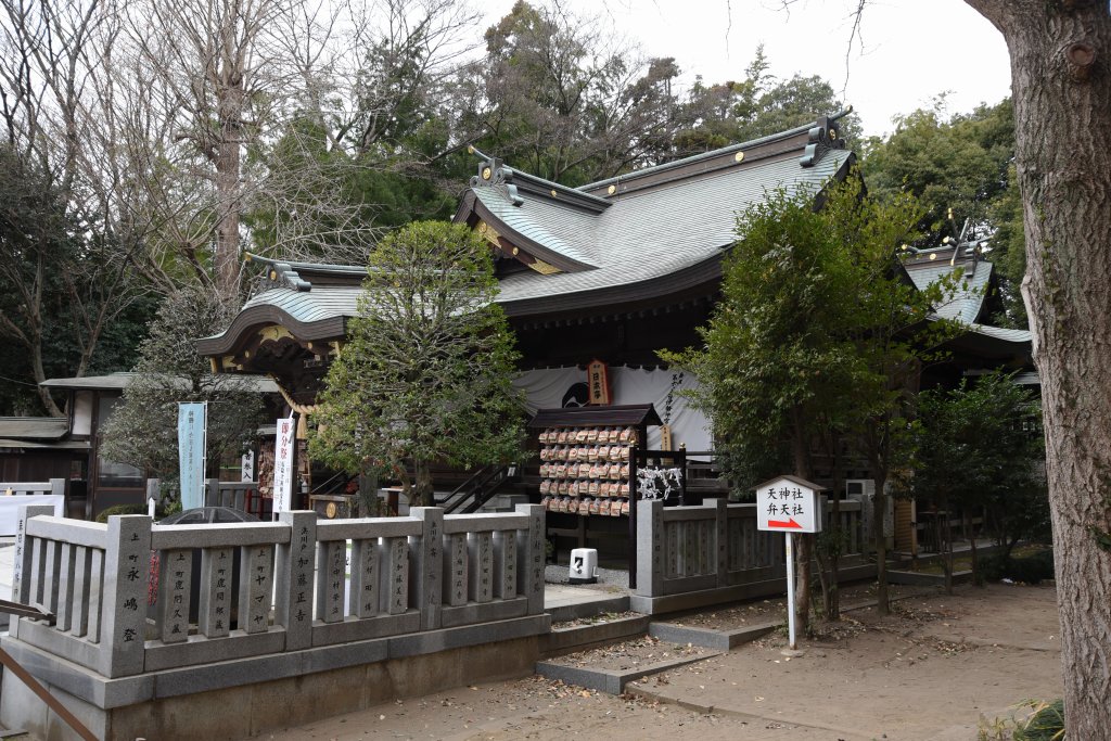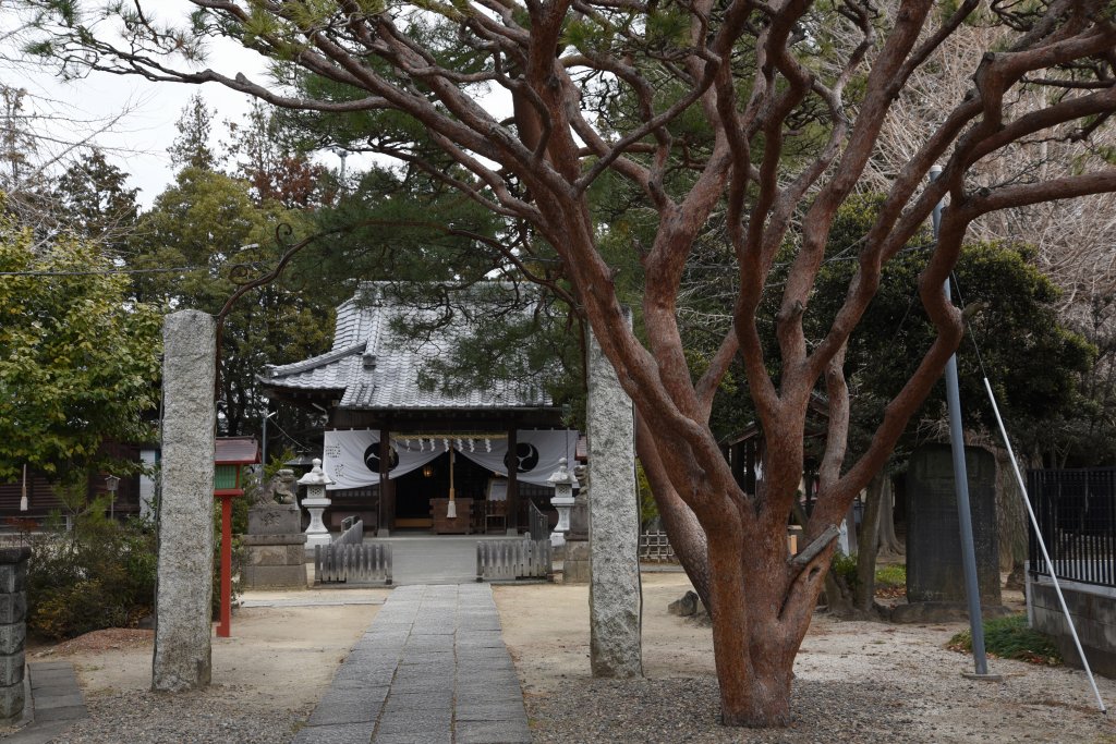 天満宮は香取神社に合祀された.香取神社参道鳥居には,天満宮の額が架かっている.