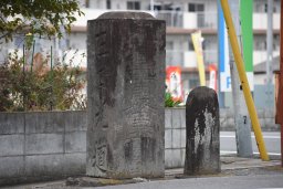 備後には一里塚があった.塚は失われ,代わりに碑が建てられている.