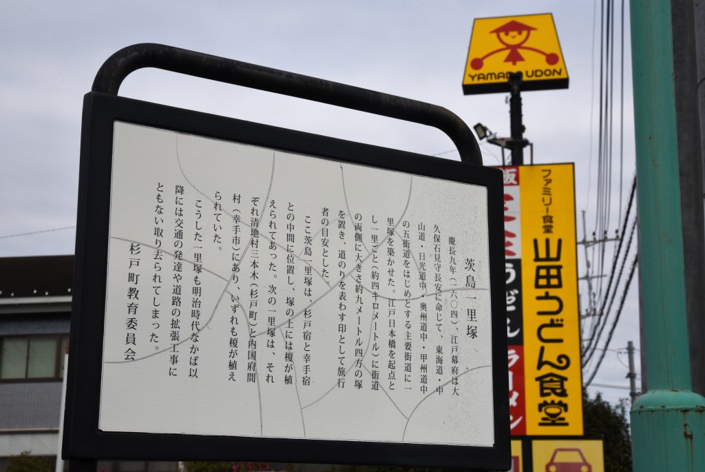 茨島には一里塚があった.大島交差点一つ北西に説明板がある.埼玉県民が愛してやまない山田うどんは,埼玉県所沢市が発祥.
