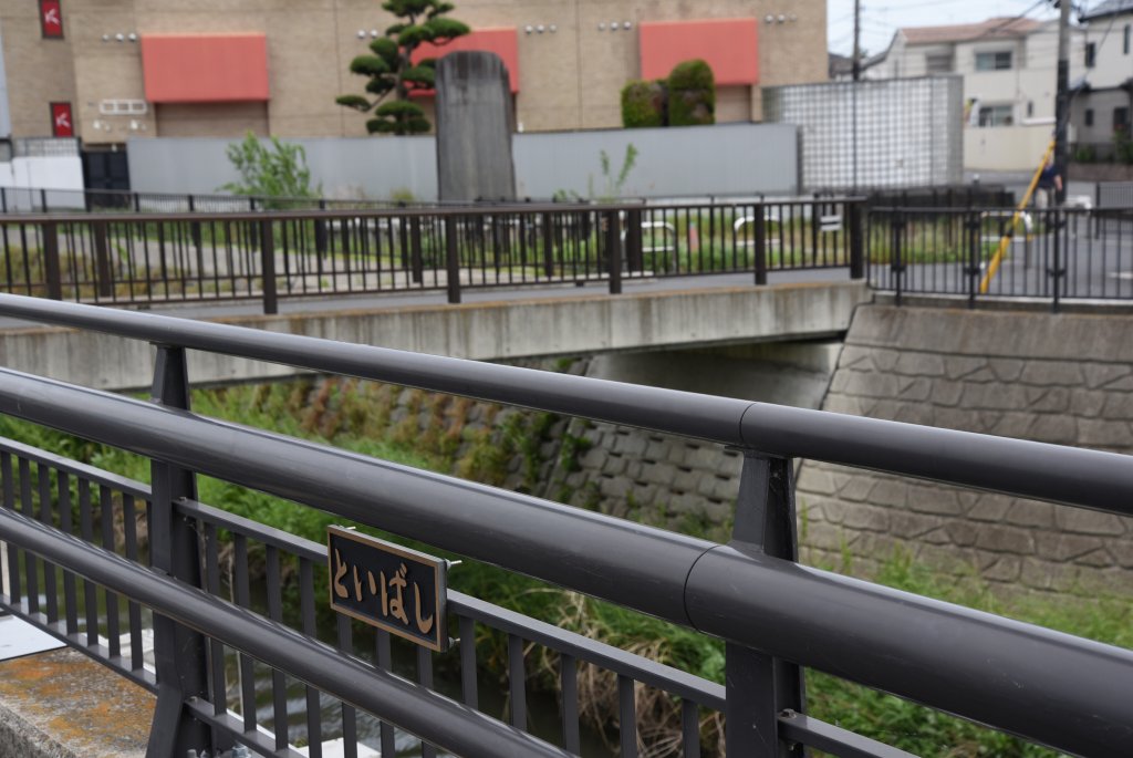 鰻立場そばの土橋らしい.今の戸井橋でよいのでは.奥に見える巨碑は,耕地整理を記念した新しいもの.