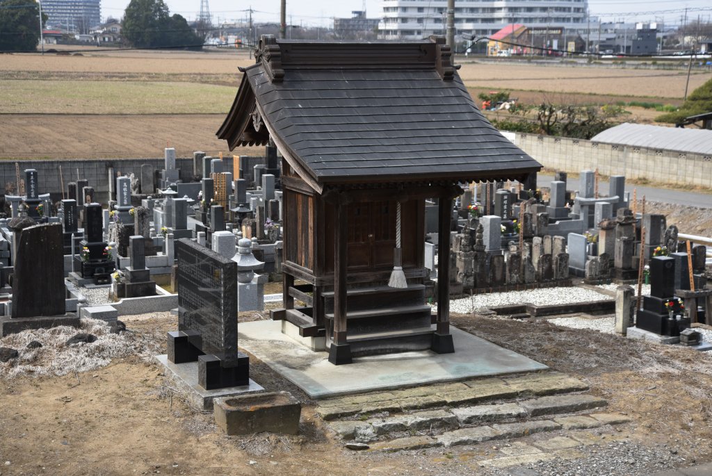 静御前の墓は栗橋駅前にある.「静女之墳」と彫られている.今は,覆堂に入れられており,レプリカが展示されている.