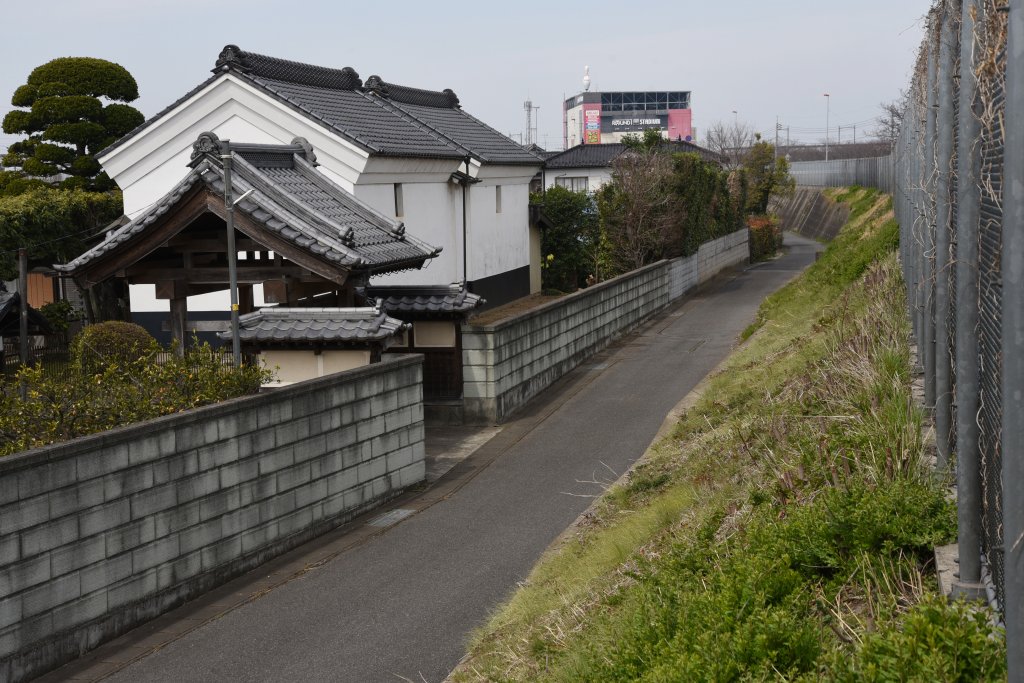 ここから旧栗橋町に入る.栗橋町は久喜市に合併した.南栗橋駅ができて久しく,ずいぶんと宅地開発が進んできた.以前の訪問時は,あたりは田園地帯で,その時にはなかった巨大なボウリング場が奥に見える.