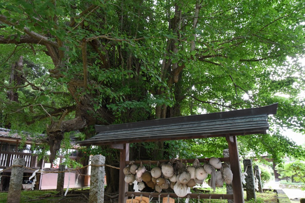 野木神社境内にある.坂上田村麻呂の蝦夷征伐を記念して植えたという.乳の下がった銀杏の前には,縫い物の乳房が奉納されている.