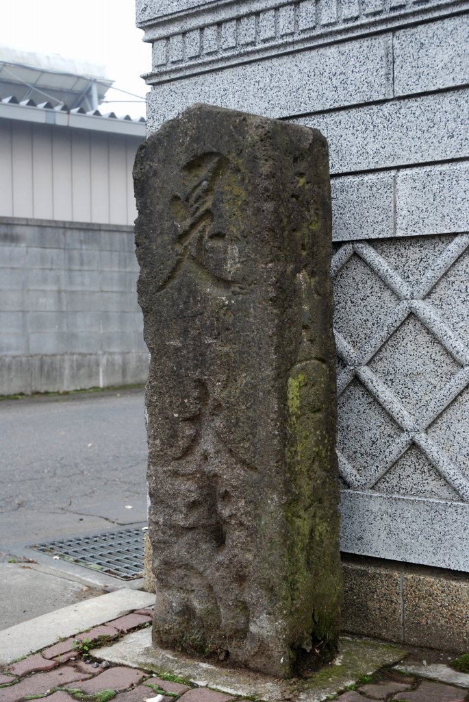 道標(外国府間626)は安永4(1775)年の建.旧日光街道沿い,行幸堤の左手下にある."右つくば道"とあるのが正面,左側面には"左日光道"を案内している.右は"東 川つま道 まいばやし道",五霞町川妻と古河市前林を示している.