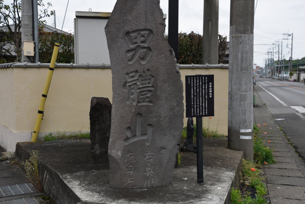 壬生街道との追分に,天保6年建の男体山碑の道標,馬頭観世音碑と日清日露日支出征馬碑が並んで建つ.道標には"右奥州 左日光"とある.この道標に惑わされて,圓朝は"日光"とある左手の壬生道に入ってしまったらしい.旅人が壬生道に奪われることを恐れた奥州街道側の住民によって,倒されては再建が繰り返され,明治44年には日枝神社境内に移されていた.