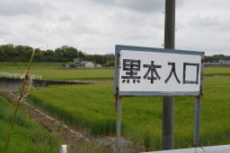 黒本は思川対岸に位置するので,直接の経路ではない.黒本集落の入口各所には,ワラジのような魔除けが竹に刺してある.