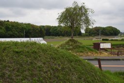 姿川を渡って,すぐに北へ道をとる.飯塚にある摩利支天塚と琵琶塚古墳は前方後円墳というが,小規模の盛り土だと素人には史跡としてのありがたさがわからなかった.飯塚の一里塚は,両側に土盛りが残っている.ただし,圓朝は一里塚の手前で東に曲がって軌道修正したらしい.