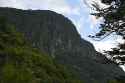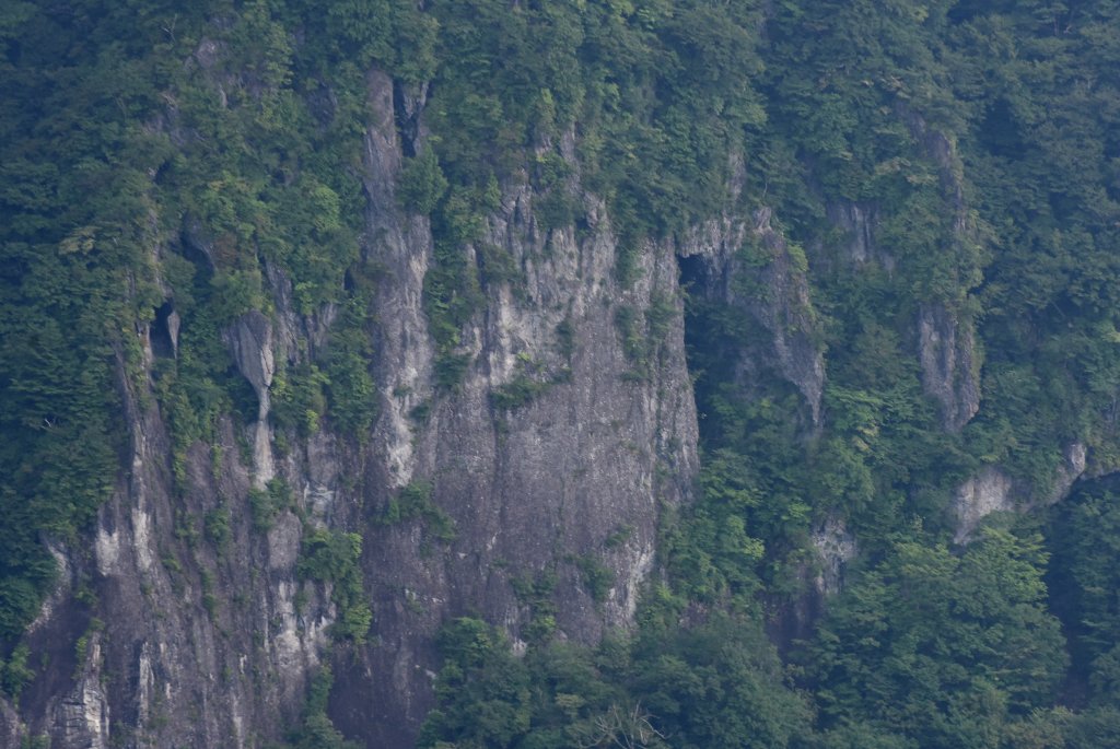 中禅寺への登り道の右手にそびえる岩壁.
