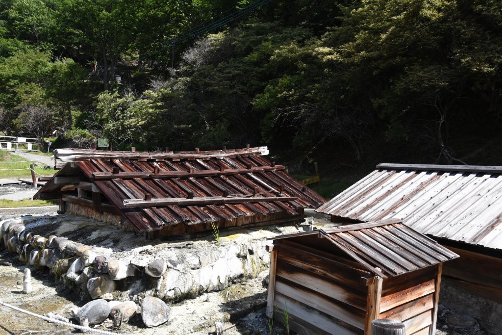 圓朝訪問後,時を経ずして今に残る釜屋や板屋,米屋など立派な温泉宿が立ち並ぶようになる.湯元源泉には,それぞれの湯宿の源泉小屋が並んでいる.