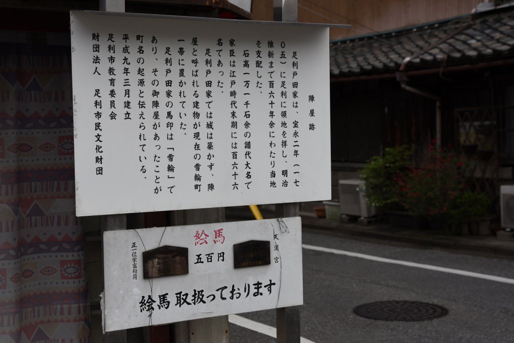 足利に城はなく,陣屋を構えた.陣屋の井戸が残っていた.足利戸田氏の紋が雪輪であるため町名となった.