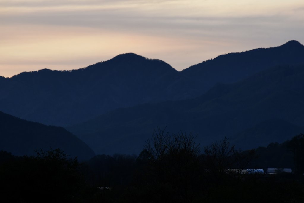 甲武信ヶ岳(こぶしがたけ).原作・談志演の両者に登場する.標高2475m.文字通り,甲州武州信州にまたがる荒川の水源.写真では右から3分の1位のところのピークがそれ.