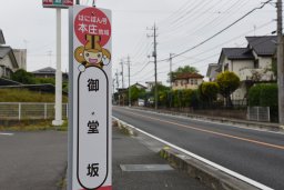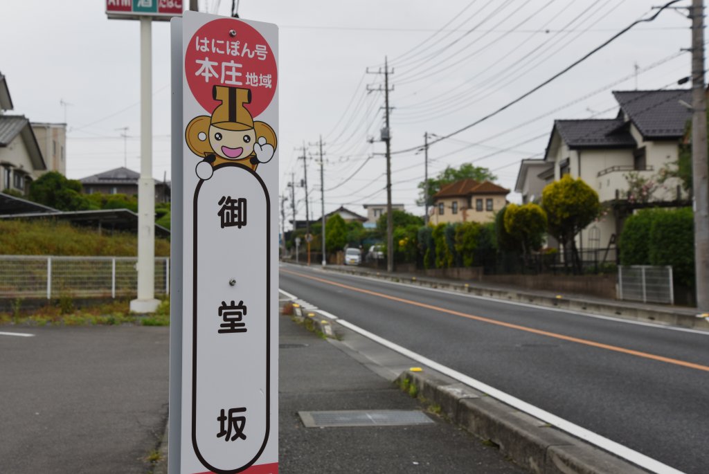 本庄宿東側の中山道の坂.南東方向へゆるく下る.「塩原太助伝」の見堂坂(けんどうざか)のルビは誤り.