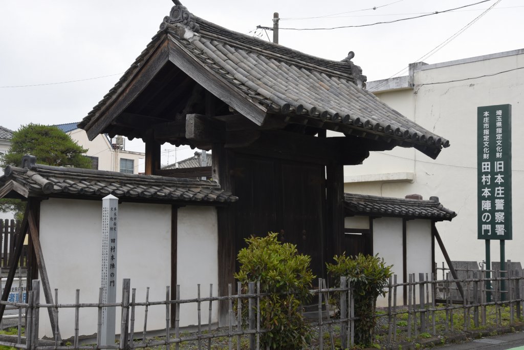 中山道本庄宿.本庄市中央1-6にあった田村本陣の門だけが中央1-2に移設された.本庄にはもう1つ内田本陣が銀座2-2にあった.
