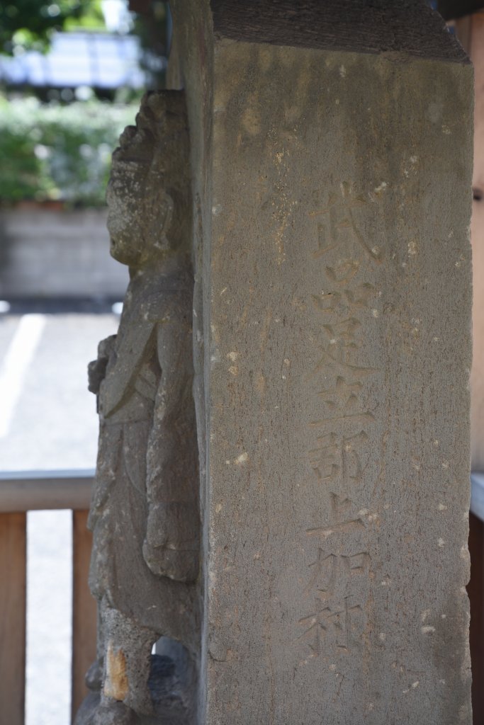 粕壁宿だった市域が広がって,今は春日部と書く.田村商店は,粕壁宿仲町に残る代表的な商家で,店の前に建つ道標は天保5(1834)年のもの.