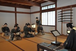【あらすじ】 百姓のせがれだった太閤秀吉は,風流の心に乏しく,茶の心得がなかった.ある日,千利休を呼びよせて尋ねた.「利休というはその方か,茶と申す物が戦場にて用なきものなれば,今より停止申しつける.答えあらば申せ」「茶と申すものは禅の悟りより出でまして,気を臍下丹田に落ち着けねばなりません.武家は茶の湯の心得あってしかるべきものと存じます」.そこで,利休が茶を点てている鼻先に太閤は槍を突きつけた.ビクともしない利休を見て,それから秀吉は彼を引き立て,大の茶人になった. 割りを食ったのが曽呂利新左衛門,何とか利休をしくじらせたいと考えていた.大雪の日,秀吉は,細川蜂須賀栗山を呼んで四方山話をしていた.こんな日は,利休も炬燵に入って寝ているに違いないと思った曽呂利は,「これから利休のところにお成りになって,彼の慌てふためくところを御覧じるも一興かと存じます」.すすめられた太閤は,さっそく三人同道で利休庵を訪れた.「利休殿,殿下のお成りでござる」と声を掛けると,利休は枝折り戸を開けて,雪の中に両手をついた.「ごらん遊ばせ,この雪の中,利休は右手に扇を所持いたしております」.利休はうろたえたかと見ていると,扇の要で飛石に敷いてあった桟俵をはねのけた.いつお成りになっても,雪のない飛石の用意ができていたのだった.秀吉は感心して囲いに通ると,炉にはちゃんと湯が沸いている.さすがに飯の用意はないだろうと,曽呂利は次の作戦に出た.「利休,予は空腹である.湯漬けを所望する」と秀吉に言われた利休は,乾し飯に湯を入れ,柚釜に利休味噌を沸かして早速の膳を整えた.利休をしくじらせようとして,逆に褒美をつかわされることになった.腹が立った曽呂利は,帰り際に庭の雪をざくざくと踏み荒らした.ムッときた利休は,短冊に「人なれば石の上をも行くべきに雪を踏むのは犬にこそあれ」と書いて渡した.ますます怒った曽呂利は,短冊の裏に「狆座敷雪に尾をふる利休哉」と返した.狆にたとえられた利休は腹を立て,曽呂利と言い争いになる.犬と狆との喧嘩が始まったから,秀吉公,庭に立ち返って,「コレコレ,犬同士の喧嘩なら予の顔に免じろ」 【ひとこと】 米はチャンと磨いで天日で干してありますから、沸立(にえた)つたお湯を入れて火にチョイと懸ければ直ぐに御飯が出来るやうになつて居るから、直ぐに湯加減をいたし、米を入れて火に掛けて置き、夫れから庭の柴折戸のところへ参り柚を三つ払ひ落して持て参る、中の実を残らず掻き出し予(かね)て拵らへてゐる利休味噌といふのを七分目に柚の中へ入れて切つた口で蓋をいたし、炉に掛けてある釜を下し池田の炭を払ひ、テッキウを二本掛けてこれへ柚を載せて置き、御飯を黒塗の櫃へ移し、お膳立てをして居る中(うち)に柚の味噌が煮えて丁度一ぱいになつた(利休の茶) 利休の茶(りきゅうのちゃ)は,『講談雑誌』6巻1号に掲載された.三遊亭圓右(1)演,今村次郎速記.カット絵とも挿絵2枚. 【つけたし】 千利休が出てくるのは,この落語くらいだろう.豊臣秀吉に重用された千利休は,北野大茶会を催したり,黄金の茶室を作ったりした.しかし,天正19(1941)年,突然秀吉により切腹を命じられる.その首は,京都一条戻橋にさらされたという. 「利休の茶」という噺,もとは講談ネタだろうか.どうも理に詰んでいて面白みに欠ける.サゲの犬の喧嘩は猿の顔に免じろというのも,ちょっとピンとこない.犬と猿では犬猿の仲.火に油を注いでしまう気がする.雪の日に秀吉をもてなす件に似たエピソードが,『茶話指月集』という逸話集に残されている(茶話指月集・江岑夏書,淡交社 (2011)).ある冬の晩,利休が突然守口に住む茶人を訪れた.亭主は喜んで利休を迎え入れ,庭の柚子を2つ棹で落とすと,柚子味噌に仕立てて出した.とっさのもてなしに感心していたところ,今度は到来物だと,ふっくらした肉餅(かまぼこ)を出してきた.さては自分が来ることを知っていて肴を準備していたのに,知らぬ顔をしていたのかと気づいた利休は,すっかり興ざめしてしまい,京に用事があると言って酒の途中で中座してしまった. |