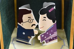 【あらすじ】 昔は芝居小屋の前に,次の芝居の内容を記した口上看板があがっていた.無筆の人が,読めるふりをして口をパクパクさせながら看板をながめていると,同じく無筆の人が声をかけてきた.「少々うかがいますか.今度の狂言は何でしょう」「お前さん,無筆かい.私は今読んでしまったよ」.元から読めないものだから,なんと聞かれても取り合わない.そこへ字の読める人が通りかかり,「楼門五三桐(さんもんごさんのきり)か.いい狂言だ」とつぶやいた.それを聞いて,「おいおい,無筆の人,読んでやるよ.反物五反の切れだ」「あまり聞かない狂言ですな.騒動ものですか」「お前も無筆で物を知らないね.反物五反の切れだから,呉服屋の騒動だ」 【ひとこと】 ×『今読んでしまつたばかりだよ』 ○『そんな意地の悪いことをいはないで‥‥』 ×『親の遺言で、一度読んだものは、二度と読むなとな、まことに気の毒だ、他を探してごらん』 ○『貸家ぢやございませんよ』(無筆の看板) 無筆の看板(むひつのかんばん)は,『講談倶楽部』24巻2号に掲載された.三遊亭小圓朝(3)演.挿絵2枚.『落語事典』には「反物五反の裂れ」(たんもんごたんのきれ)の演題で載っている. 【つけたし】 小品.「楼門五三桐」は,今も人気の演題.石川五右衛門が南禅寺の山門の楼上で花見をしている.「絶景かな,絶景かな」.山門がせり上がると,階下に巡礼姿の真柴久吉が現れる.「石川や浜の真砂はつきるとも 世に盗人の種は尽きまじ」.久吉に気づいた五右衛門が手裏剣を投げつけると,久吉は持っていた柄杓でそれを受け止める.「巡礼に御報謝」.双方見栄をきめて幕になる. 口上看板は,座元が用意した芝居の由来などが書かれた看板.名場面を描いた絵看板ならばよかったが,文字ばかりではどうしようもない.脇に近日と書いてあれば,すぐに答えなくても日をあらためることができた. |