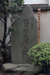 【あらすじ】 酒井米水という絵師,金銭にこだわりがなく,酒好き.仕事を頼まれても気に入らなければ,なかなか絵を描かない.ある晩のこと,酔っぱらって自分の家もわからなくなってしまった.あかみさんに,「仕事がつかえているのにお酒を飲んでばかり」と言われ,「急くことならば余所で書いてもらえ.ぐづぐづ言うならとっとと出ていけ」というと,そのまま寝こんでしまった.「このままでは,この児がどんなひもじい思いをするだろう」と意を決した女房は,ふすま地の仮張りに,墨で竹の絵と安倍貞任の古歌,"頼みつるたよりの糸のきれはてて をられはせまじ今日の細布"と書き置きして,幼い子どもを連れて里へ帰ってしまった.夜も明けかけ,酔いからさめた米水先生,書き置きを見て首をひねった.「あれに出ていけと言ったのはうっすら覚えている.が,なぜ竹を描いていったんだろう.ハハア,おれが虎だったから」 【ひとこと】 この酒井米水先生は、 句「虎でない証拠に側へ竹をかき といふやうな、先生で画の大家とは申されませんが、例の金銭に屈托をしない、それに前申すやうな大酒呑みでございまして、注文がありましても、なかなか容易に描写(かき)ません(竹に虎) 竹に虎(たけにとら)は,『百花園』240号に掲載された.桂文治(6)演,石原明倫速記. 【つけたし】 講談落語雑誌の『百花園』は,この号をもって,予告なく終刊した.最終号には,この「竹に虎」のほか,朝寝坊むらく(7)(三遊亭圓馬(3))の「鳴海絞」,三遊亭圓左(1)「やつがしら」,圓朝の通夜の席で圓枝・圓馬の小噺を代演した圓左の「通夜の饒舌」が載っている.「鳴海絞」は,「明治摸様三組盃」として知られる長編人情噺で,連載1回目で中絶した. 本文と呼応するマクラがついている――安政年間,芝金杉に指物師の熊蔵という男がいた.腕はいいが,金時とあだ名されるほどの酒びたりだった.女房に逃げられ,酒毒のためわずらってしまう.そんなある日,熊が起きてこないので,長屋の連中がのぞいてみると,中で頓死していた.布団の下に書き置きが見つかった."金時もたのみの綱が切れはてて季武たのむ弥陀の頼光".これを見た大家が,「ハア,貞光書いた紙が保昌(ほうしょう)だろう」.頼光四天王の渡辺綱,坂田金時,碓井貞光,卜部季武と平井保昌を折り込んでいる. 演者の桂文治(6)は,江戸から明治にかけて活躍した噺家で,晩年は隠居名,桂大和大掾,桂楽翁を名乗った.芝居噺が得意で,西南戦争のルポ物なども残している.柳島の妙見境内に顕彰碑が建てられている(写真). |