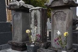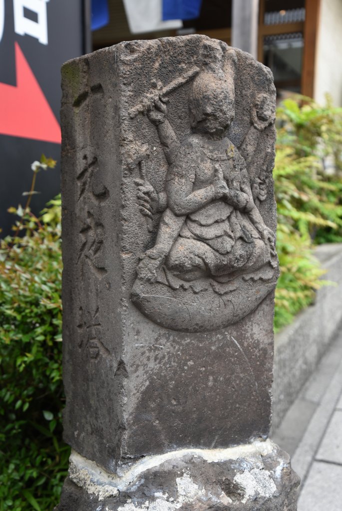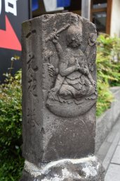 岩波版のルビは,せんぢゆしんしゆく.亀有の新宿(にいじゅく)ではなく,千住本宿に対して新宿か.千住掃部宿あたり.写真は圓朝寄進の燈籠(千住仲町4,源長寺).