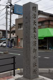 明治天皇は,明治9年の東北巡幸の際と,明治14年に3回,大沢宿本陣の福井権右衛門宅に小休された.記念碑は,大沢橋の北詰に移設されている.