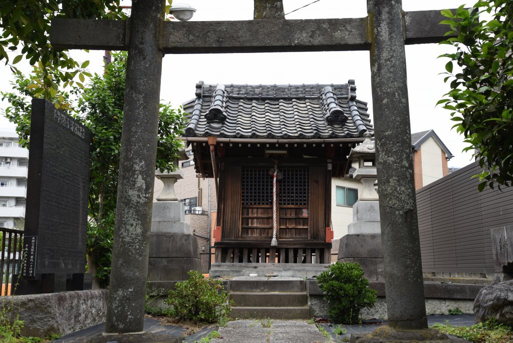 水神橋手前を旧道に入り北側(西保木間4-14)に水神の小社がある.周囲の開発が進み,見晴らしがよくなっていた.
