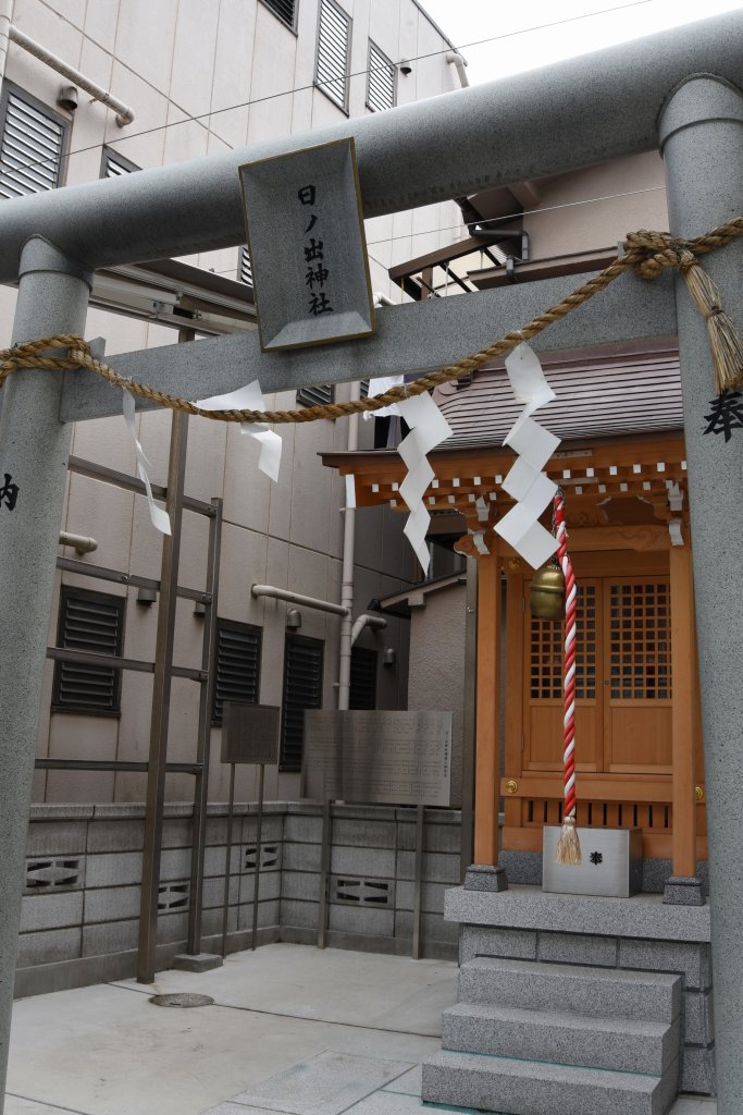 荒川放水路に分断される.そこに弥五郎新田橋も計画されていた.日ノ出町自治会が建てた日ノ出神社の説明板には,弥五郎新田の名が記されている.荒川放水路の川底に沈む稲荷社は,弥五郎新田の副戸長の発案で,いったん五反野稲荷に合祀された.戦後,新たに社殿を建て,五反野の親宮から分離独立し,元宮の日ノ出神社と称するとある.