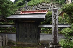 七里(しちり)のことだろう.街道は狭く,車の通行も多いので,明治天皇の御小休所は見落としやすい.門の奥に,四方垂木の旧家,さらに尾立岩があるという.