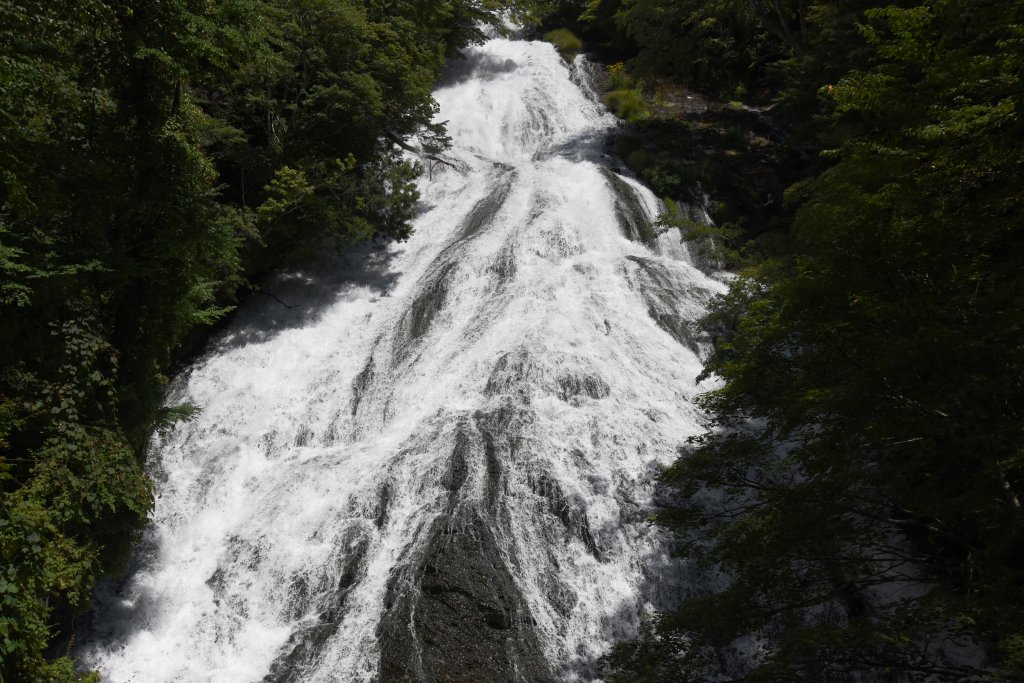圓朝風にいえば,湯ノ湖からドッドと流れ落ちている.下から仰ぎ見るばかりでなく,滝上までの遊歩道がつけられている.川から滝に落ち込むところは,迫力ある景色.