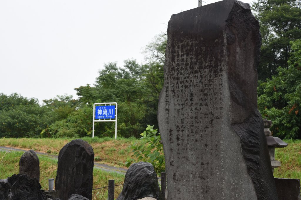 「安中草三」は土地の侠客をモデルにした噺.草三の記念碑は,石川左近将監忠房を生前に祀った生祠の階段下にある.